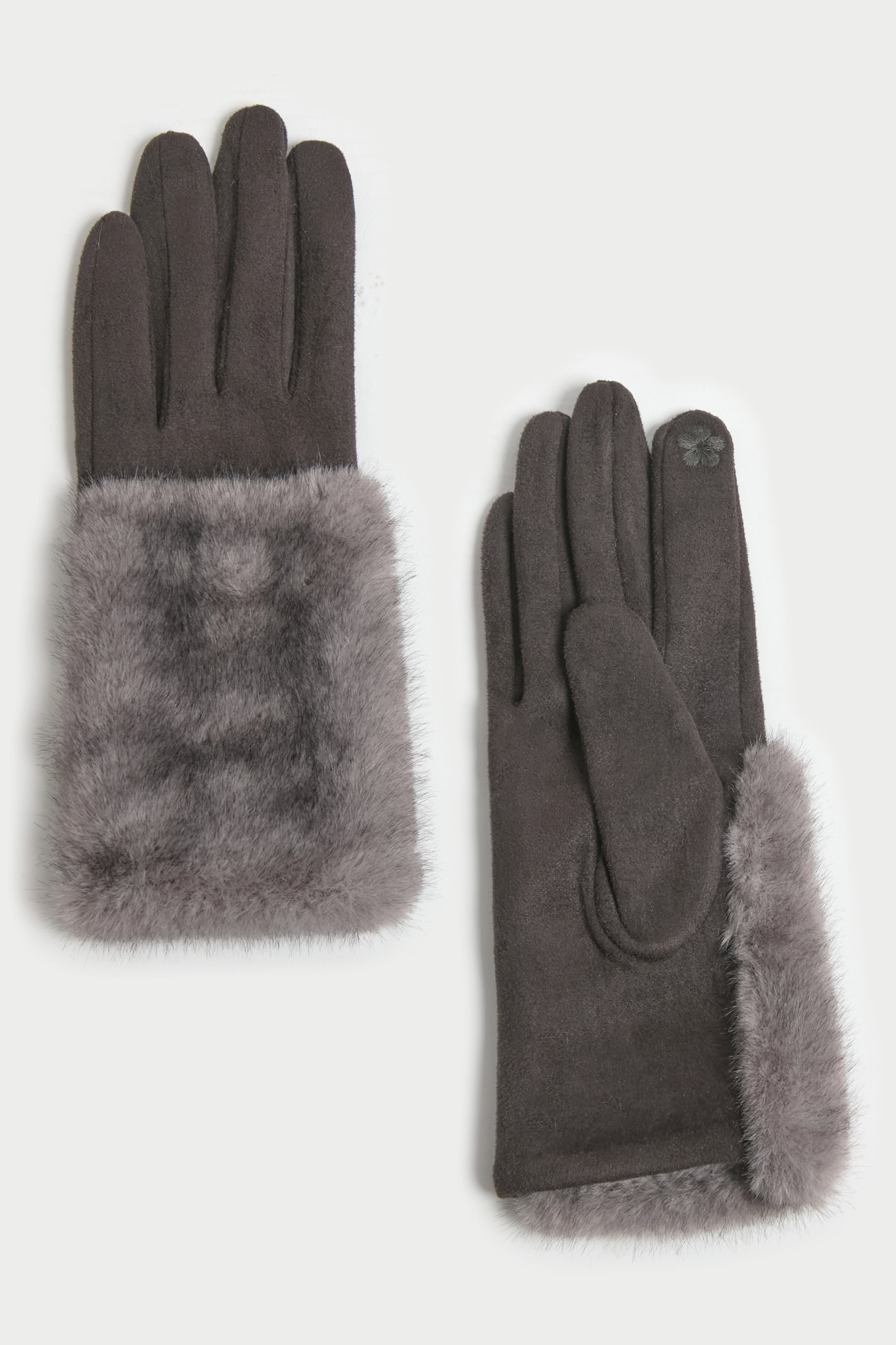 Suede gloves with gradient fur patch trim