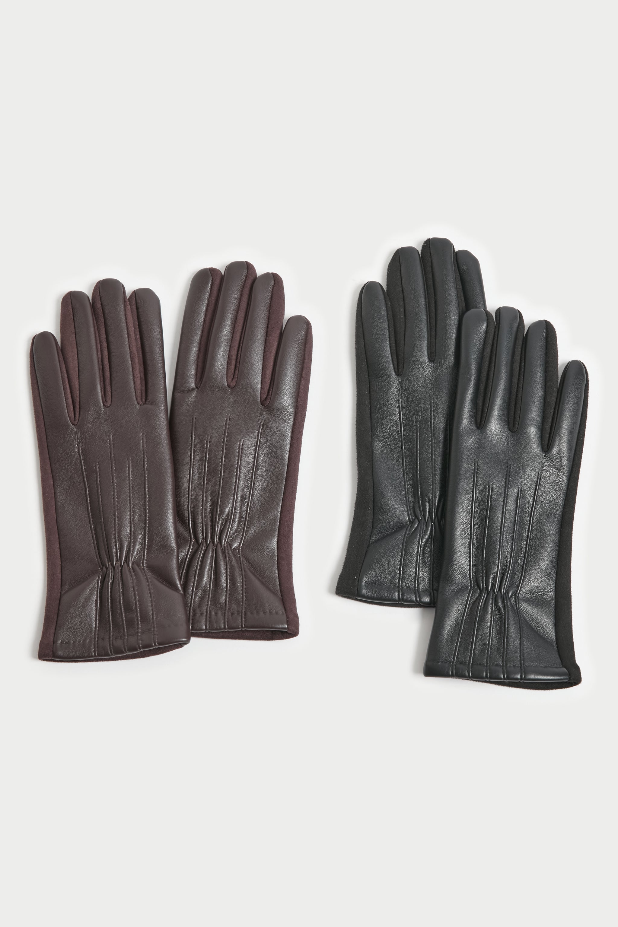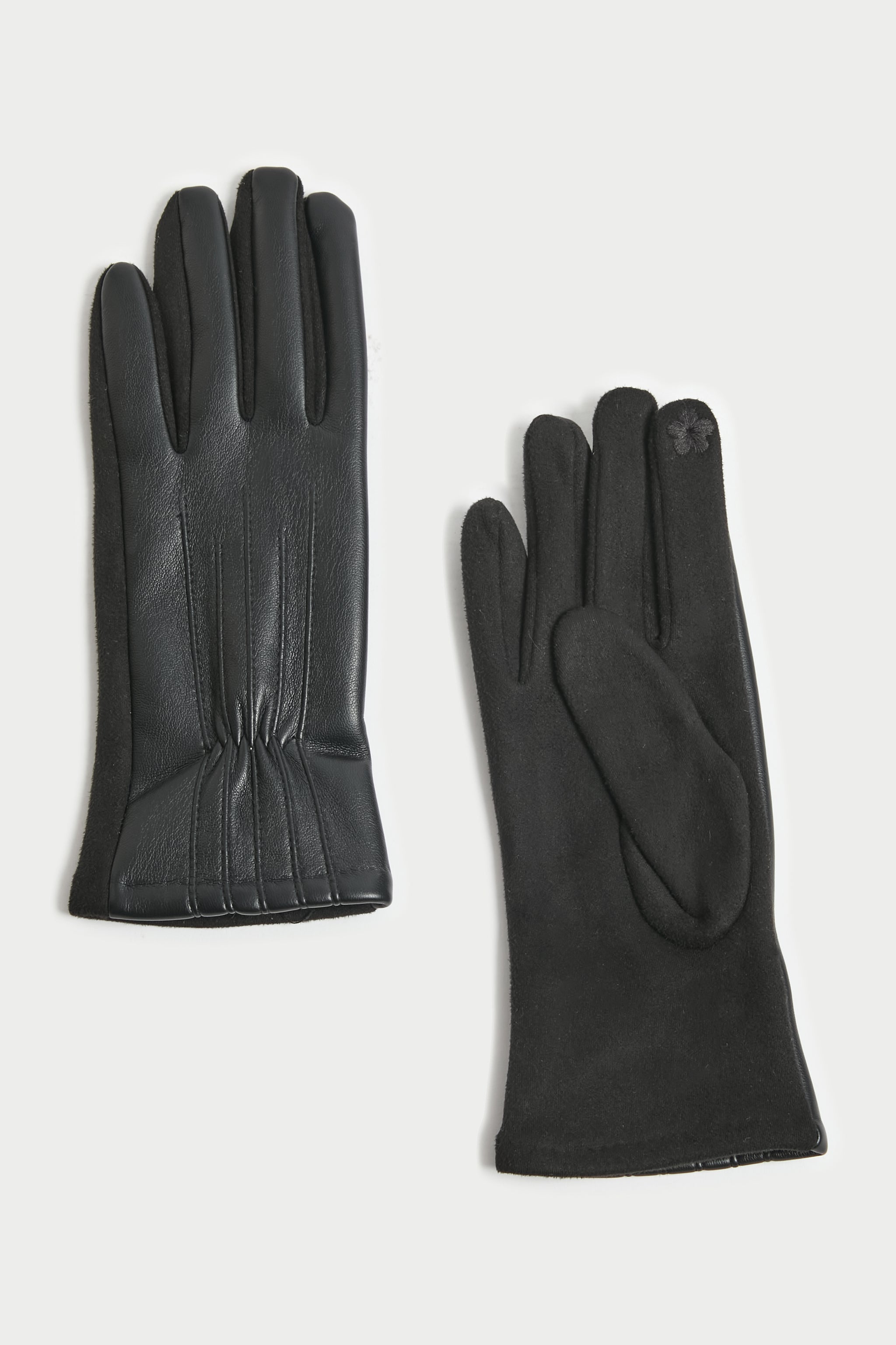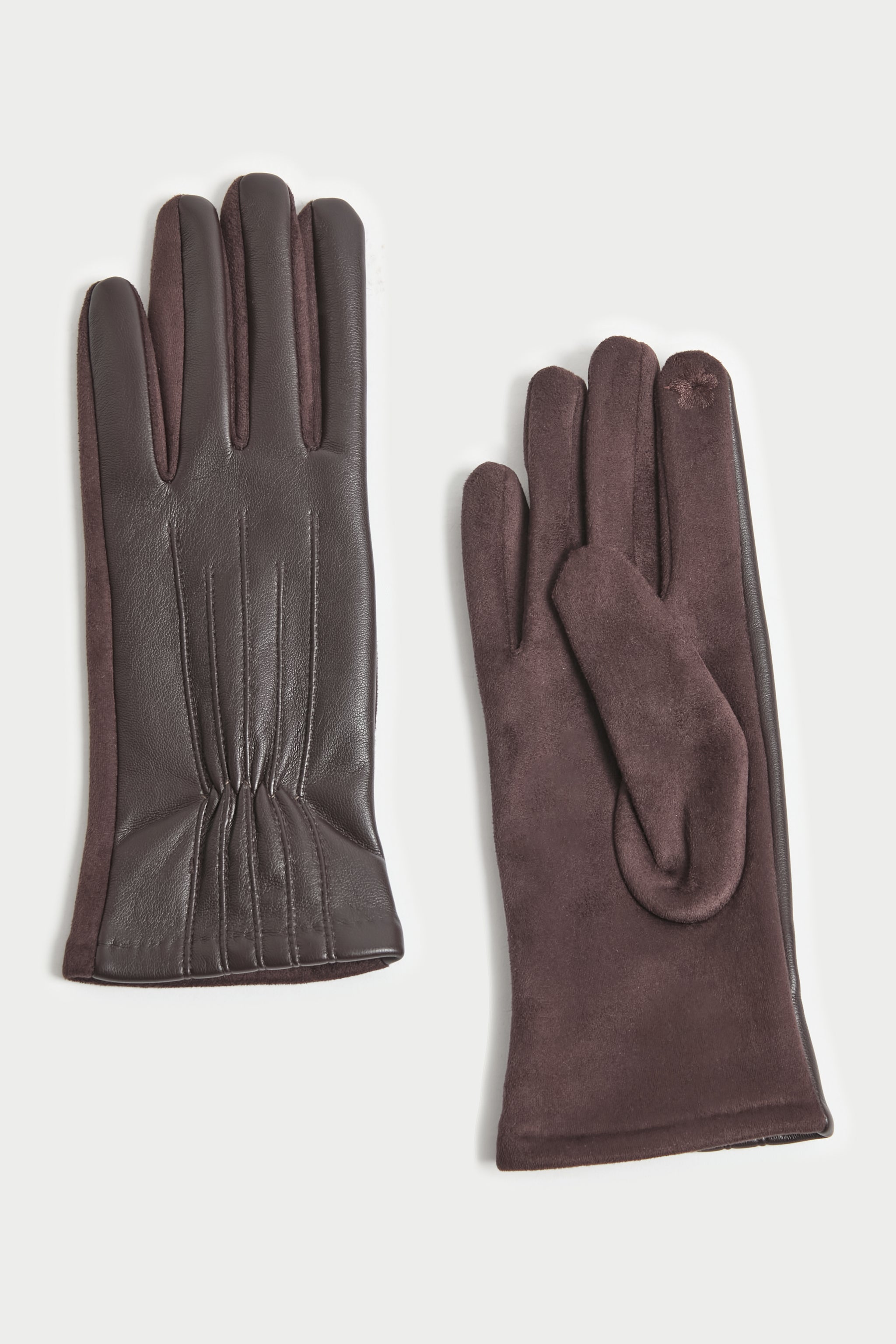 Mix of suede and faux leather, featuring softly pinched seam detailing